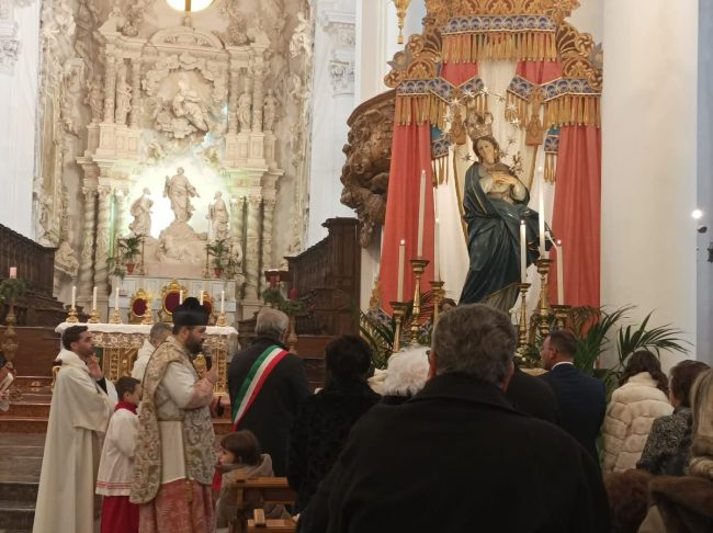 Argilla, legno e cartapesta. Così sono state realizzate dal giovane artista Giuseppe Barresi le statue (a esclusione del Bambinello) del presepe monumentale inaugurato oggi – lunedì 8 dicembre – nella Matrice di Partanna. Lo scenario dove è ambientato il presepe è ispirato alla Sicilia di un tempo. Al centro, Maria e Giuseppe contemplano il Bambinello, riscaldato dal fiato del bue e dell’asinello. Sulla sinistra, i tre Magi — simbolo dell’umanità in cammino e provenienti dai tre continenti allora conosciuti — offrono oro, incenso e mirra, segni della regalità, divinità e umanità di Cristo.