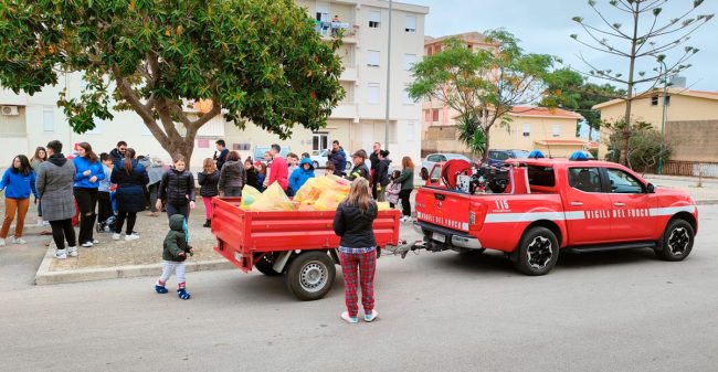 Insieme a loro i vigili del fuoco del distaccamento di Castelvetrano che con jeep e carrello traino hanno portato i regali (scatole scaldacuore) donati dall’Associazione volontari ospedalieri. La comunità parrocchiale ha portato in piazza anche un presepe allestito con le statuette che sono state acquistate dai diversi parroci che si sono alternati in parrocchia da 24 anni. Il presepe è rimasto montato in piazza e i residenti del quartiere ne saranno i “custodi”. Alcuni operatori parrocchiali e un rappresentante dei “Colibrì 2.0”, infine, sono saliti a casa di Alessio, un ragazzo del quartiere affetto da una malattia, per consegnarli personalmente un regalo di Natale.