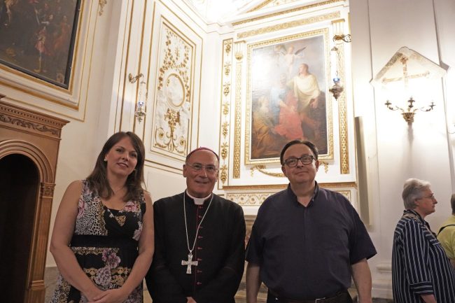 È tornata in Cattedrale a Mazara del Vallo la tela restaurata che raffigura “I santi Vito, Modesto e Crescenzia”, opera dell’artista Giuseppe Velasco. La tela è stata ricollocata nella prima cappella a sinistra della Cattedrale, dove è tumulata la salma del Vescovo emerito monsignor Emanuele Catarinicchia. Dopo l’intervento di restauro sulla tela è stata rinvenuta la firma dell’artista Giuseppe Velasco, pittore palermitano nato da genitori spagnoli che all’età di 15 anni, in omaggio al grande pittore spagnolo, volle cambiare il suo cognome in Velasquez. Il dipinto, al momento del restauro effettuato da Rosalia Teri, L’opera presentava problemi conservativi legati sia alla tecnica esecutiva che all’ambiente conservativo.