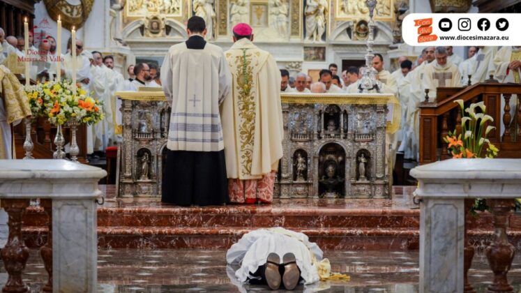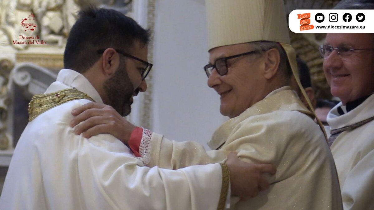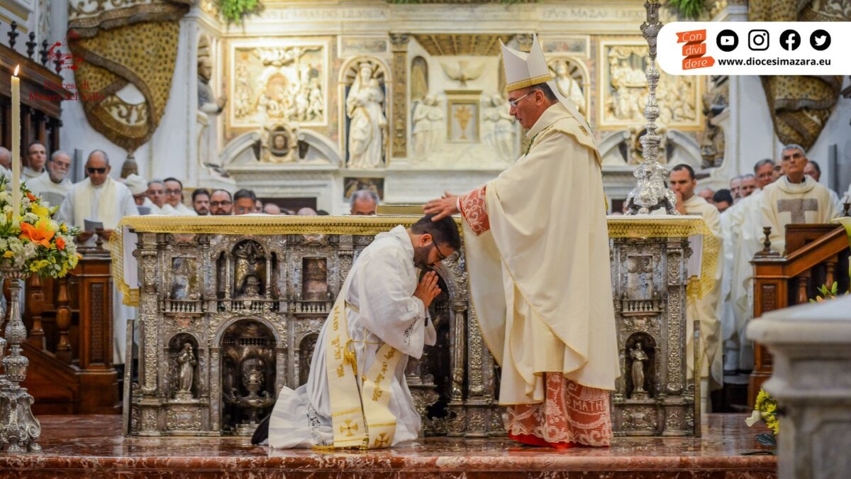 Don Daniele La Porta è stato ordinato presbitero. La celebrazione è avvenuta ieri sera nella Cattedrale Ss. Salvatore di Mazara del Vallo gremita di gente giunta da ogni paese della Diocesi. Numerosa la presenza di fedeli provenienti dalla parrocchia San Francesco di Paola di Castelvetrano, dove don Daniele si è cresciuto. Don Riccardo Battocchio, Rettore dell’Almo Collegio Capranica di Roma (attualmente frequentato da don Daniele La Porta) ha presentato al Vescovo don Daniele. Alla celebrazione hanno partecipato anche S.E.R. monsignor Vito Rallo, Arcivescovo titolare di Alba, Nunzio Apostolico e monsignor Domenico Mogavero, Vescovo emerito della Diocesi.