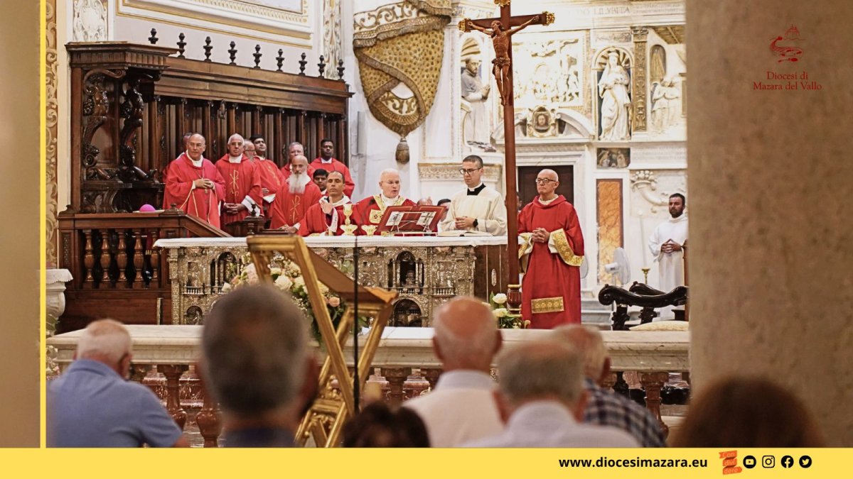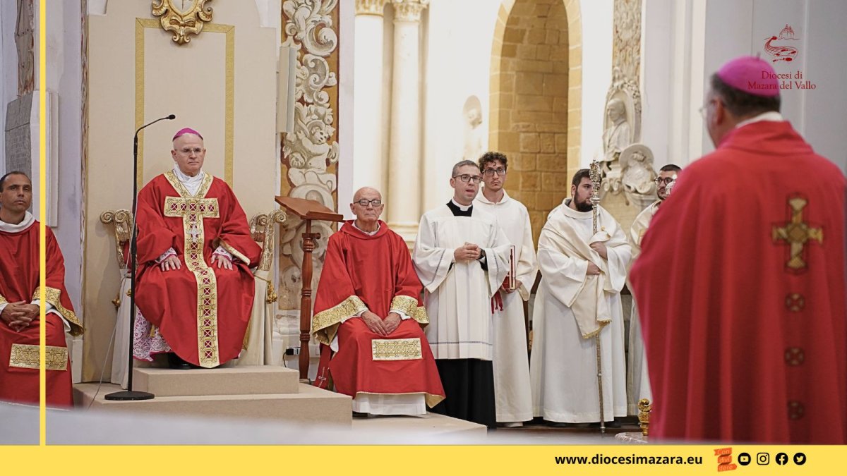 «Il mondo che si contrappone a Dio è dentro le nostre persone, quando a predominare sono la ricerca di sé, la chiusura agli altri, il dominio degli istinti, la voglia di possesso, l’idolatria di questa vita terrena e dei beni materiali». È questo uno dei passaggi dell’omelia pronunciata ieri sera in Cattedrale a Mazara del Vallo da monsignor Mariano Crociata, Vescovo di Latina, già Vicario generale della Diocesi di Mazara e Vescovo di Noto. Monsignor Crociata è stato invitato dal Vescovo monsignor Angelo Giurdanella a presiedere la santa messa nell’ambito del Festino di San Vito. La santa messa è stata concelebrata dal Vescovo Giurdanella, dall’emerito monsignor Domenico Mogavero e dai presbiteri della Forania di Mazara del Vallo, presenti il sindaco Salvatore Quinci, l’assessore Germana Abbagnato e i rappresentanti delle Forze dell’Ordine.