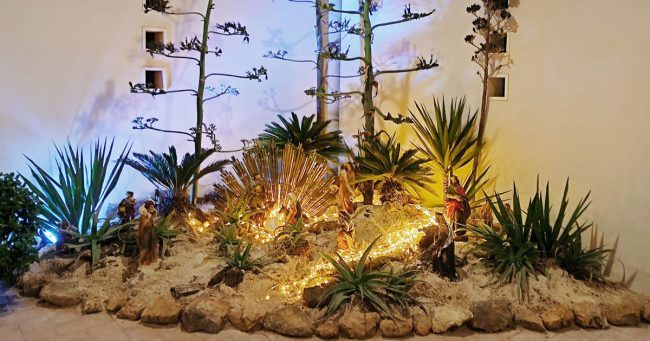 Un deserto che fiorisce, uno spazio arido trasformato in un luogo di rivelazione. Una vera catechesi visiva. È questa l’interpretazione teologica del presepe che è stato allestito nella parrocchia San Lorenzo di Mazara del Vallo e che si potrà ammirare tutto il tempo del Natale. «Le piante desertiche e le rocce richiamano l’aridità dell’esistenza umana: le nostre fatiche, le nostre attese, i nostri silenzi interiori», spiega il parroco don Giuseppe Alcamo. «Nella Scrittura – continua don Alcamo – il deserto è lo spazio dove Dio parla al cuore (Os 2,16), dove l’uomo riscopre l’essenziale. Qui, proprio in questo luogo apparentemente sterile, accade l’inatteso: Dio nasce».