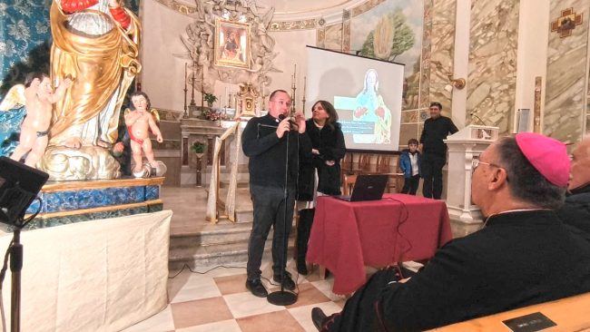 È stata presentata lo scorso week-end nella chiesa San Francesco di Vita la statua settecentesca di Maria Ss. Immacolata restaurata da Rosalia e Antonino Teri. Alla cerimonia hanno presenziato il Vescovo monsignor Angelo Giurdanella e il Vicario generale don Gioacchino Arena (che è pure parroco a Vita). La statua, che viene custodita proprio all’interno della chiesa, mostra la classica iconografia dell’Immacolata in piedi su una nube con 2 putti e il drago sotto ai piedi e le mani giunte sul petto. Dell’opera non si conosce l’autore ma è attribuibile a maestranze di ambito palermitano. Dall’analisi prima del restauro è stato possibile accertare che i putti sono stati applicati successivamente, probabilmente a fine ‘800, e la decorazione pittorica è stata rifatta diverse volte, tranne per gli incarnati del viso e per il mantello in argento. All’avvio del restauro la scultura mostrava uno stato di conservazione mediocre: ridipinture e rifacimenti, soprattutto sulla veste, la nube, i putti, la base e il serpente.